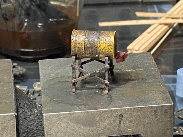 Damn I love that tank…I had one of those laying around that I can’t seem to find right now…I need a few tanks for my module for gas, diesel, and bunker. There in the shop somewhere. I really like the rust effects, you can see the texture…I can’t get the barrels right either…lol